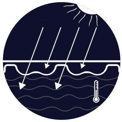 Materialele noastre reduc pierderile de apă prin evaporare, acționând ca o barieră între suprafața apei și atmosferă. Prin simpla acoperire a piscinei cu o prelată solară, evaporarea este redusă cu peste 98%, rezultând conservarea resurselor de apă și creșterea temperaturii în interiorul piscinei.