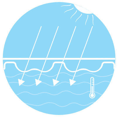 Materialul transparent pentru prelate solare Sol+GuardTM de 500 de microni transmite 80% din energia soarelui în spectrul vizual și IR prin material pentru a încălzi apa și bazinul piscinei. Testele din Marea Britanie au arătat creșteri ale temperaturii de până la 6 °C, iar mărturiile din țările cu climă mai caldă estimează o creștere cu până la 8 °C peste temperatura ambientală a piscinei, reducând cererea de încălzire cu până la 70%
